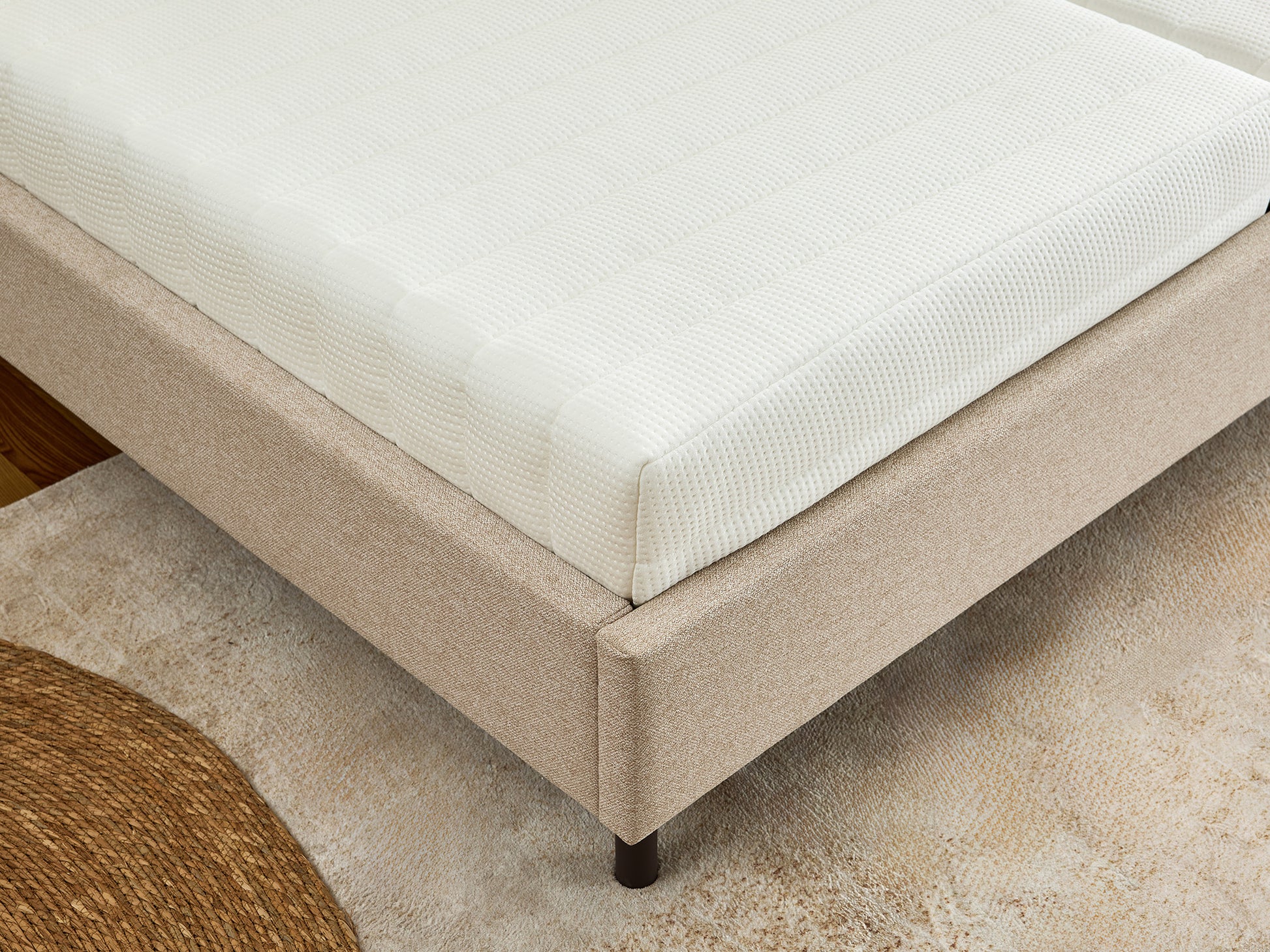 Die Unterseite ist mit einer rutschfesten Beschichtung versehen, die die Matratze sicher und stabil an ihrem Platz hält. So bleibt sie fest auf dem Bettrahmen liegen – ordentlich, ruhig und ganz ohne Verrutschen.