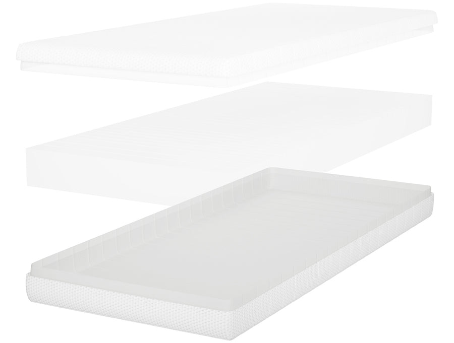 Der Bezug ist rutschfest, abnehmbar und leicht zu reinigen – so bleibt Ihre Matratze stets frisch und gepflegt. Der Kern aus hochdichtem Schaumstoff behält seine Form und Elastizität über die Zeit und sorgt so für gleichbleibenden Komfort.