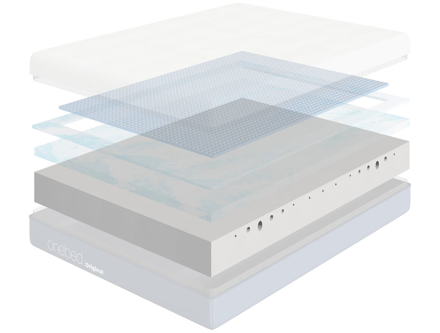 Die atmungsaktive Grid-Schicht aus hochwertigem TPE passt sich flexibel den Körperkonturen an und bietet individuellen Komfort. Ihre punktelastische Struktur sorgt für gezielte Druckentlastung und eine ausgewogene Balance zwischen Nachgiebigkeit und Stützkraft.